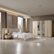 Dormitorul din imagine impresionează printr-un design contemporan și rafinat, ce îmbină eleganța nuanțelor neutre cu texturi sofisticate. Setul este compus dintr-un pat tapițat, ce oferă confort vizual și fizic, două noptiere asortate cu finisaje lucioase și detalii metalice discrete, un dulap spațios, precum și o comodă elegantă completată de o oglindă generoasă. Întregul ansamblu creează o atmosferă caldă, modernă și echilibrată, ideală pentru un dormitor care îmbină funcționalitatea cu stilul.