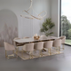 Dimensiuni și capacitate: Masa Zenith G este concepută pentru a acomoda confortabil până la 6 scaune, oferind suficient spațiu pentru mese festive sau întâlniri cu prietenii și familia.