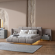 La baza acestui dormitor se află un pat tapitat cu dimensiunile de 180x200 cm, îmbrăcat într-o tapițerie din stofă cu bucle, care adaugă o notă de eleganță și textură. Patul nu doar că oferă un somn odihnitor, ci devine și un element de decor atrăgător în cameră.